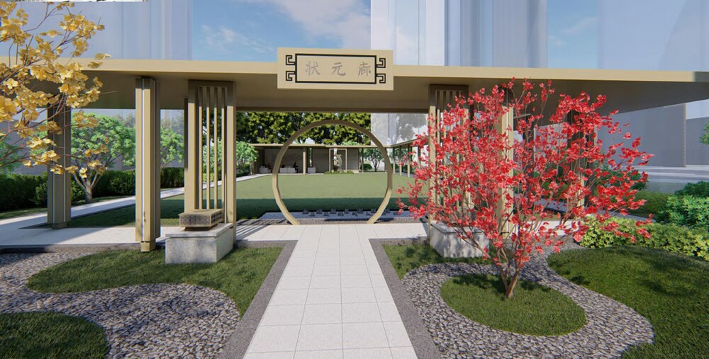 设计理念:运用中式的造园手法,打造“学府门第、登门望府、翰林大道、状元廊台、鲤跃龙门、文曲满庭”六境与“墨彩童梦、院望所归”两苑,营造一个弥漫着书香气息的恬静的居住花园。